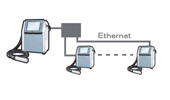 Imprimante jet d’encre dévié continu (CIJ) : Multi-contrôle jusqu’à 16 unités.